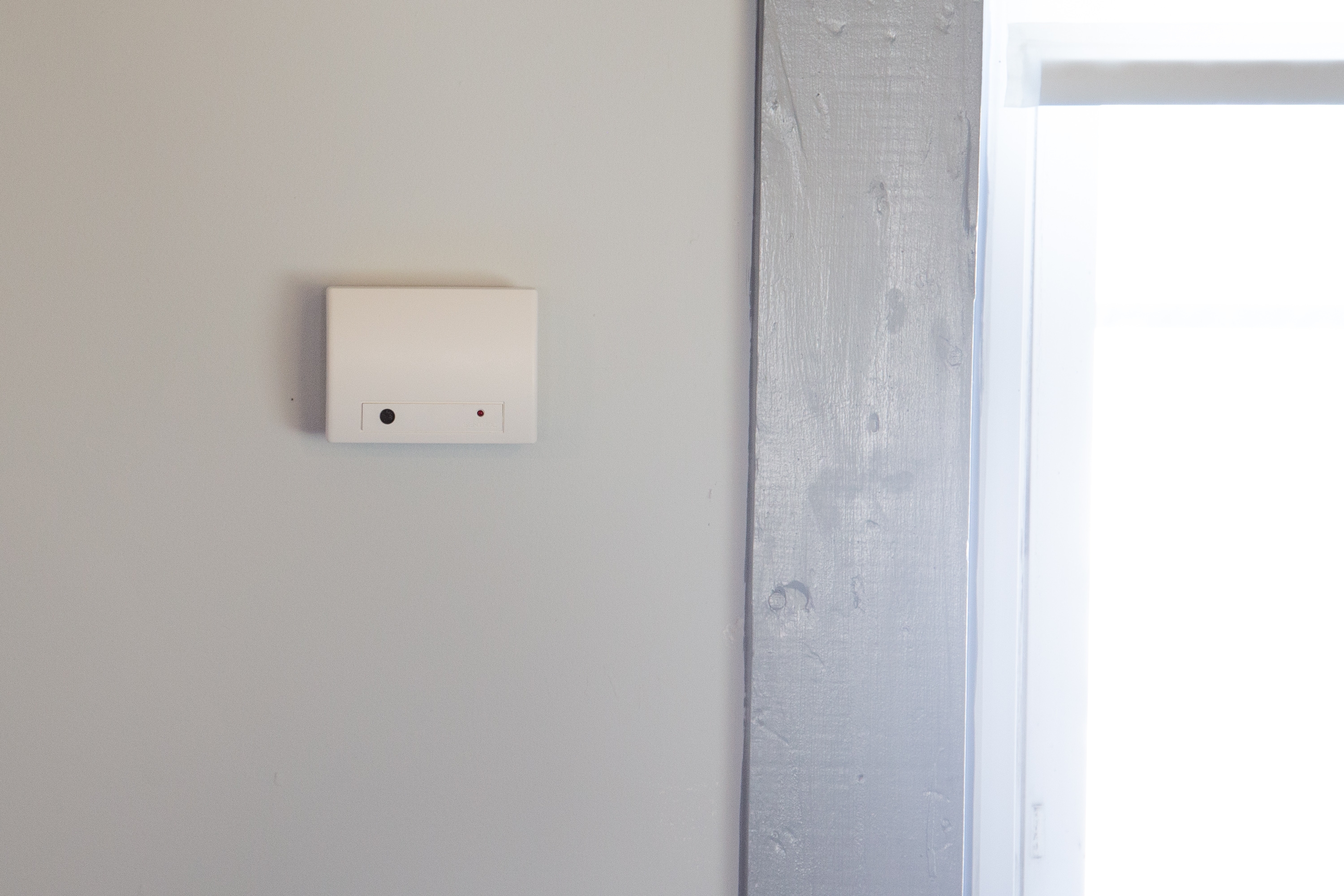 Mount the sensor at least 3 feet (~1 m), but no more than 25 feet (~7.5m), from a window using the mounting screw locations or VHB tape. Ensure that the sensor has visual line-of-sight to all of the windows being protected.