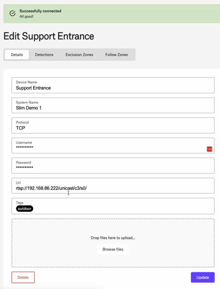 On the camera's settings detail page, you can also view and edit the tags associated with any given camera.